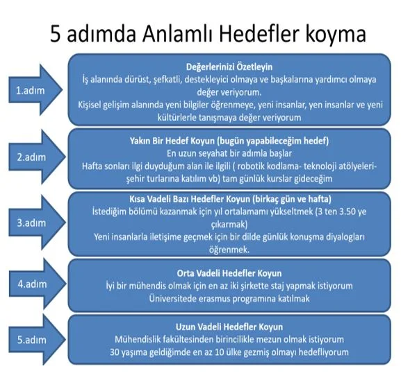 Hedef belirleme yalnızca ne istediğini bilmek değil, aynı zamanda bu isteğin hayatındaki değerlerle örtüşüp örtüşmediğini fark edebilmektir. Kimi zaman insanlar başkalarının beklentilerine göre emeller koyar toplum, aile ya da sosyal çevre odaklı kararlar verir. Ancak bu tür emeller, kısa vadeli tatmin sağlasa da uzun vadede iç huzur ve gerçek başarı hissini vermez. Gerçekçi ve anlamlı bir hedef belirleme, bireyin kişisel değerleriyle bütünleştiğinde etkili olur.